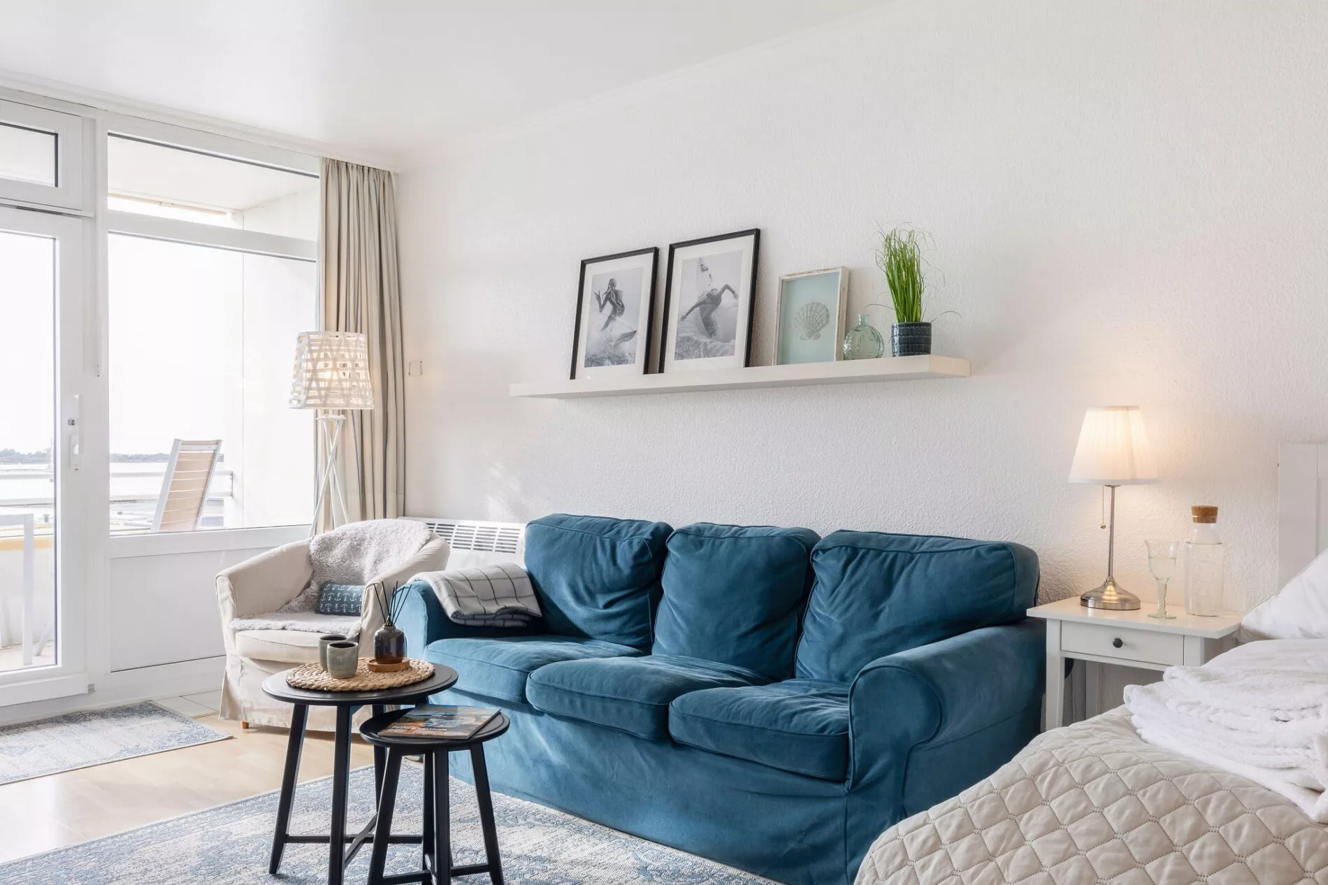 Verbringe deinen Urlaub in Cozy Beach, einer liebevoll eingerichteten Ferienwohnung mit traumhaftem Ausblick. Das 49 m² große Apartment liegt ideal zwischen dem Südstrand und dem Yachthafen von Burgtiefe auf Fehmarn. Vom überdachten Balkon aus genießt du den Blick auf die Ostsee und kannst morgens die einlaufenden Schiffe und abends den Sonnenuntergang beobachten.
