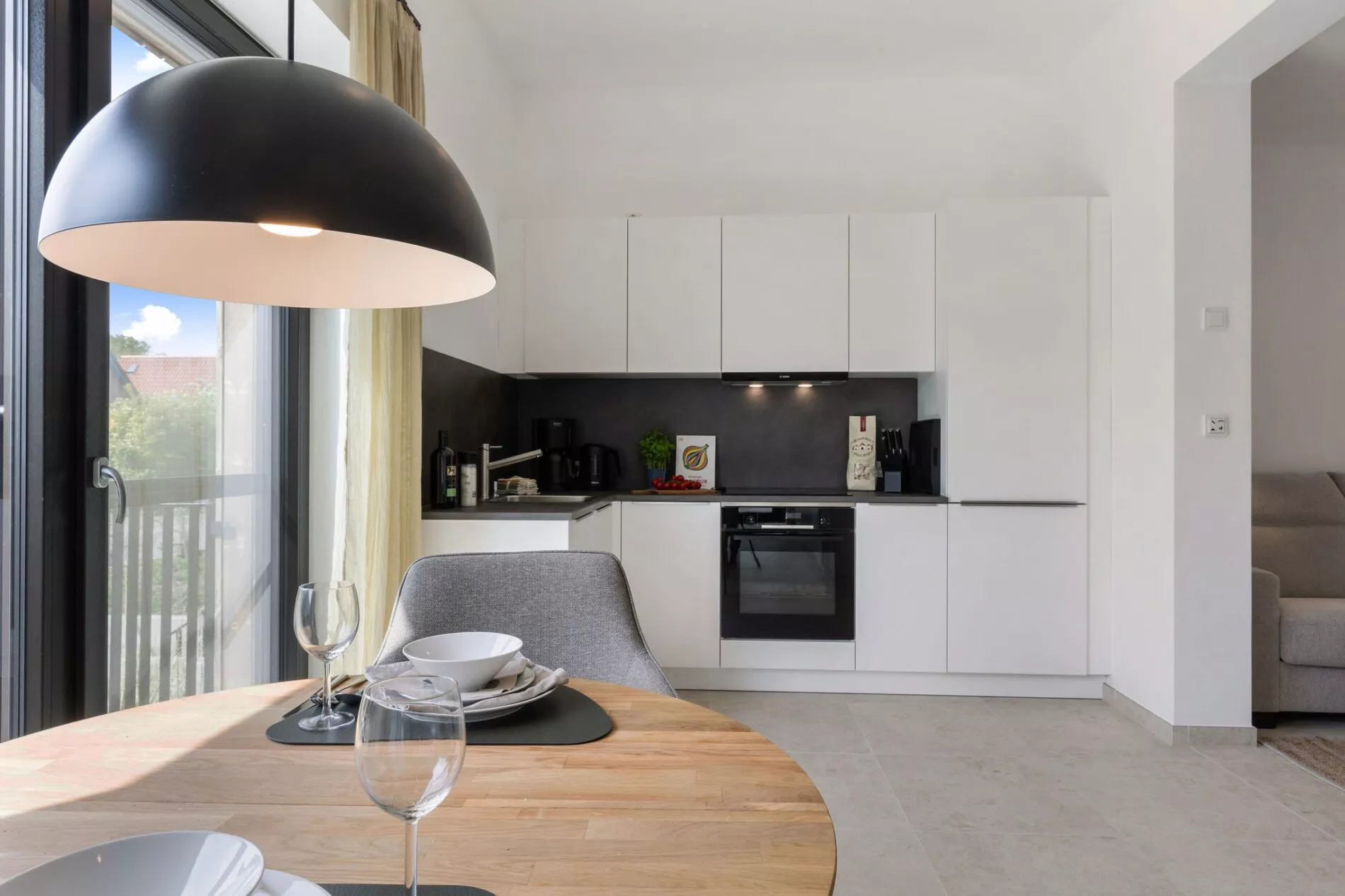 Die ca. 50 m² große Ferienwohnung bietet Platz für bis zu 2 Personen und überzeugt mit moderner, hochwertiger Ausstattung. Du wohnst in einem stilvoll eingerichteten Apartment mit Fußbodenheizung, offener Designküche (inkl. Induktion, Backofen, Spülmaschine), Schlafzimmer mit Komfortbett (180×200 cm) und modernem Bad mit Walk-in-Regendusche. Ein gemütlicher Wohnbereich mit Smart-TV, eine private Terrasse mit Strandkorb und Grill sowie WLAN und ein eigener Parkplatz gehören ebenfalls dazu. Die Wohnung ist rauch- und haustierfrei – ideal für erholsame Tage zu zweit.