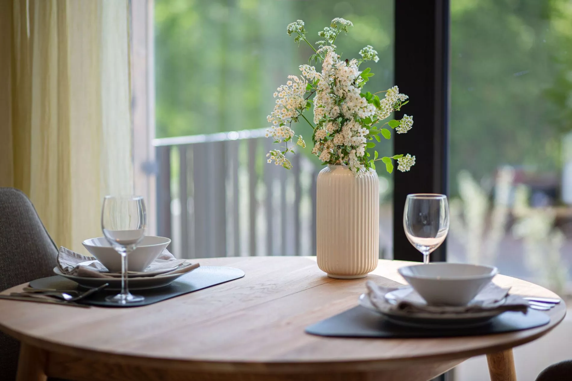 Der Wohnbereich ist mit einem edlen Schlafsofa und Smart‑TV ausgestattet, während das Schlafzimmer mit einem 180×200 cm Polsterbett, elektrisch öffnendem Fenster und elektrischem Rollladen punktet – ideal, wenn du nachts den Sternenhimmel genießen möchtest. Das Badezimmer wartet mit einer luxuriösen Rain‑shower und Handtuchheizkörper auf, und die gesamte Wohnung ist mit Fußbodenheizung ausgestattet – für ein rundum gemütliches Gefühl.
