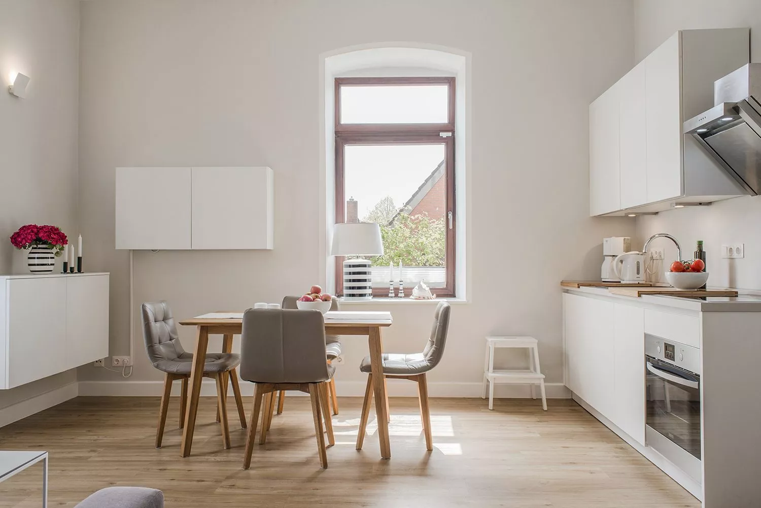 In der stilvollen Ferienwohnung Helle Stuuv wohnst du nur wenige Meter von der Ostsee entfernt in einem liebevoll sanierten Gutshaus. Die Wohnung wurde hochwertig eingerichtet und bietet ein gemütliches Wohnzimmer mit Kaminofen, eine luxuriöse Wohnküche und ein modernes Badezimmer mit bodengleicher Dusche, Rainshower und Handtuchheizung. Das Schlafzimmer ist mit einem komfortablen Boxspringbett ausgestattet und bietet ausreichend Stauraum.