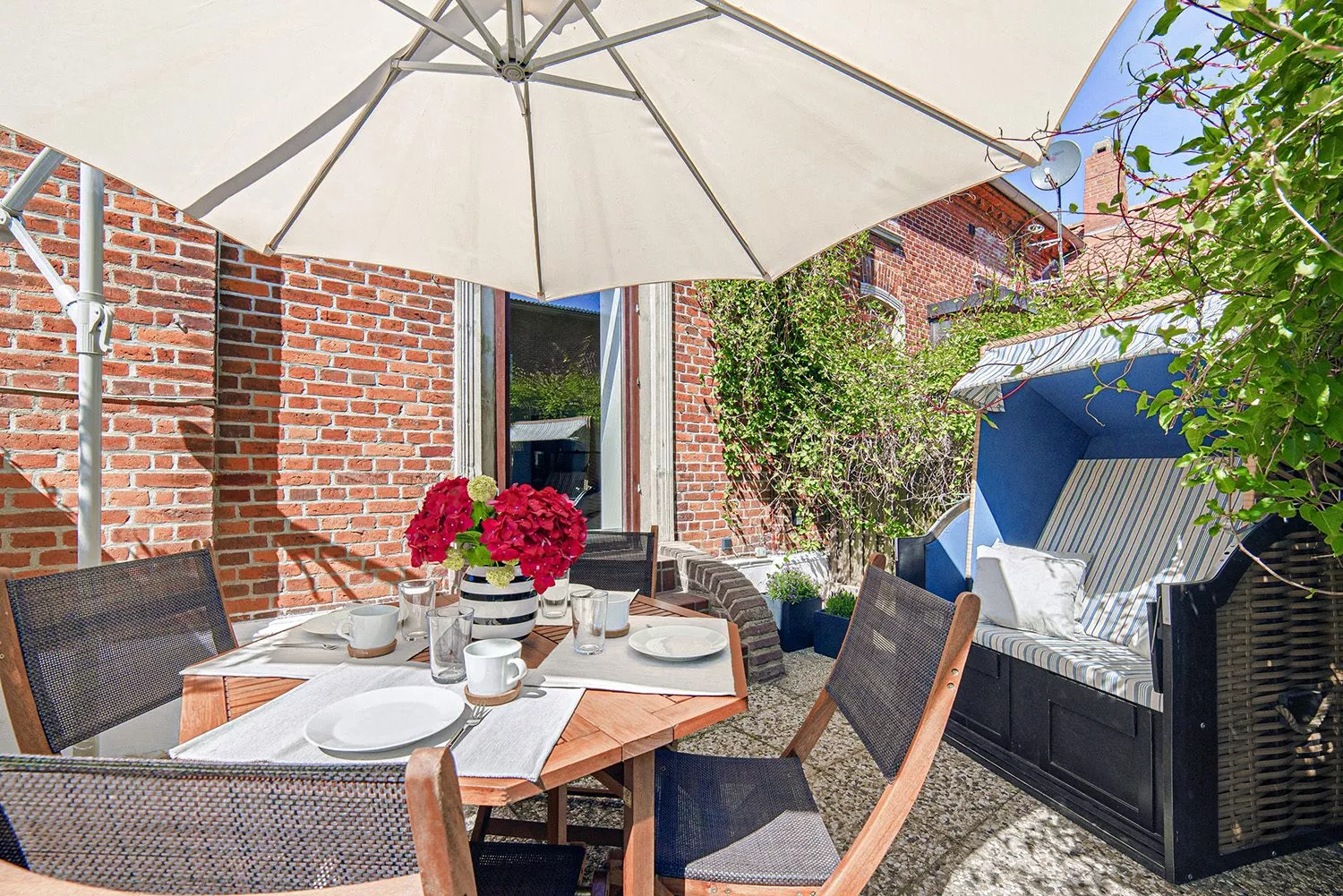 Ein besonderes Highlight ist die sonnige Südterrasse mit direktem Zugang vom Wohnzimmer – ideal für entspannte Stunden im Strandkorb oder einen Abend mit einem Glas Wein. Bei deiner Ankunft sind die Betten frisch bezogen, Handtücher liegen bereit, und die Nutzung der Waschmaschine ist inklusive. Sämtliche Nebenkosten sind bereits im Übernachtungspreis enthalten – so genießt du einen rundum sorglosen Urlaub.
