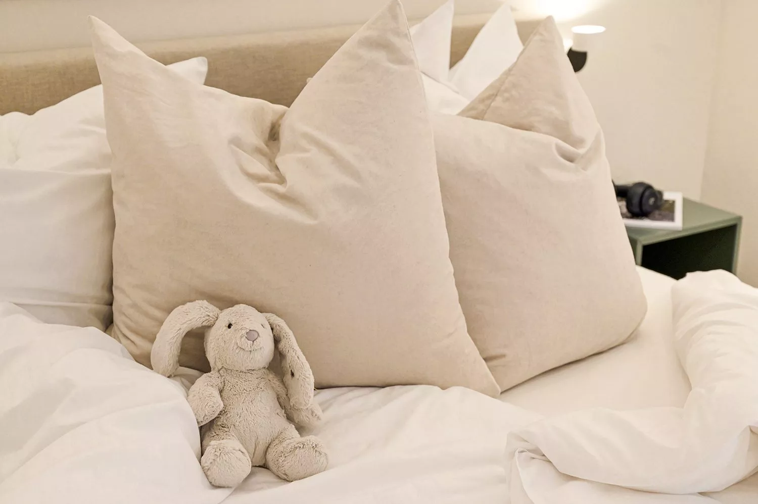 Für entspannte Wellness-Momente sorgt die eigene Sauna, außerdem gibt es eine komfortable, bodenebene Regendusche. Fußbodenheizung, breites Mauerwerk und große Sprossenfenster garantieren ein angenehmes, ökologisches Raumklima. Handtücher und Bettwäsche sind bereits bezogen, sodass du ganz entspannt ankommen kannst.