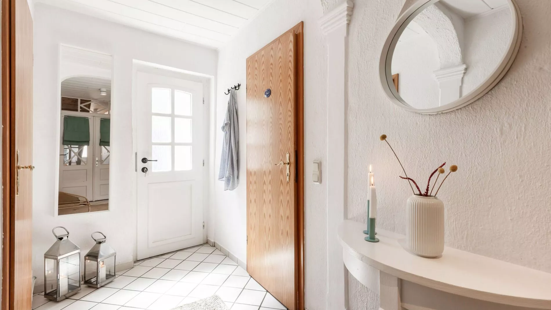 Im Huus Badstaven erwartet dich die liebevoll eingerichtete Ferienwohnung Muschel im Erdgeschoss eines charmanten Fachwerkhauses. Die Wohnküche ist komplett ausgestattet und lädt mit Essbereich zu gemeinsamen Mahlzeiten ein. Das Schlafzimmer bietet ein hochwertiges Boxspringbett und viel Stauraum, im Kinderzimmer steht ein Etagenbett für zwei Kinder bereit. Das große Badezimmer verfügt über Badewanne und separate Dusche.