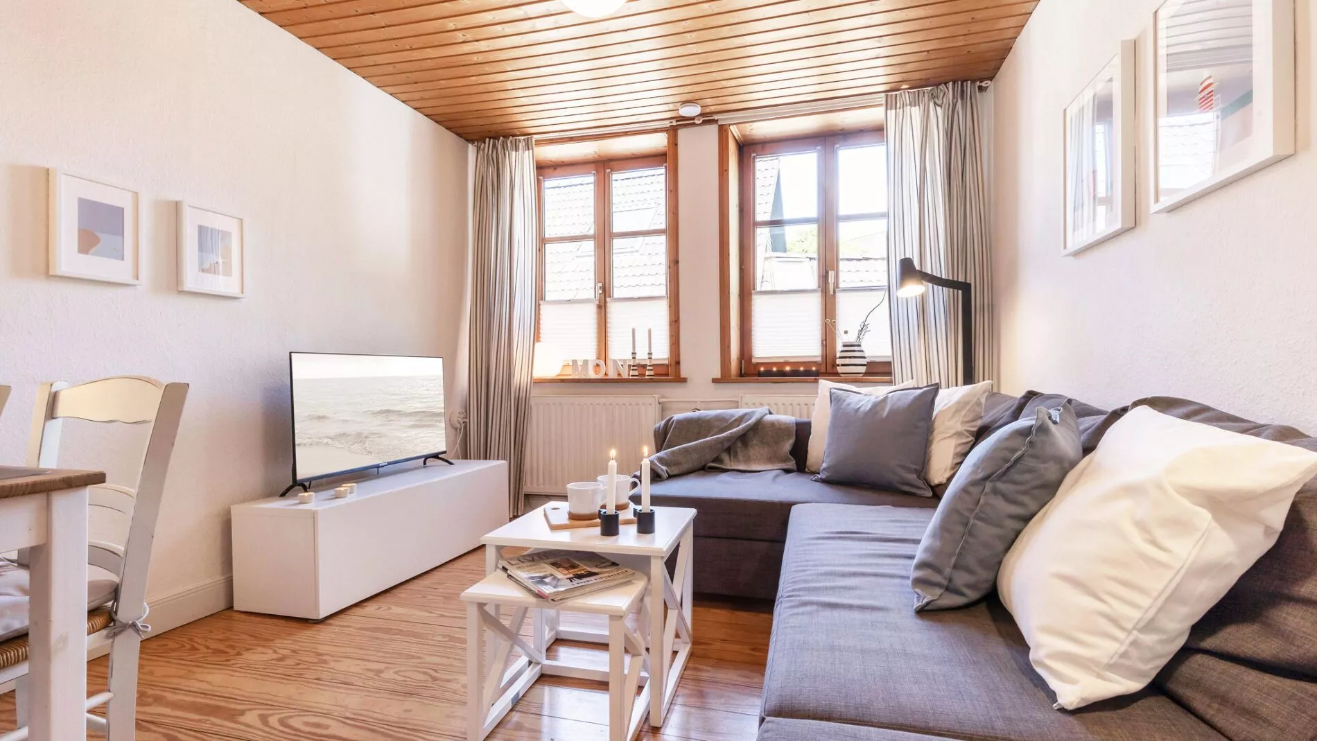 „Muschel“ im Huus Badstaven besticht durch ihren gemütlichen Landhausstil, die moderne Ausstattung und die zentrale Lage in einer der schönsten Gassen von Burg. Highlight ist die große Terrasse – ideal, um ruhige Stunden an der frischen Luft zu genießen. Perfekt für Familien oder Paare, die Komfort, Gemütlichkeit und kurze Wege in die Altstadt schätzen.