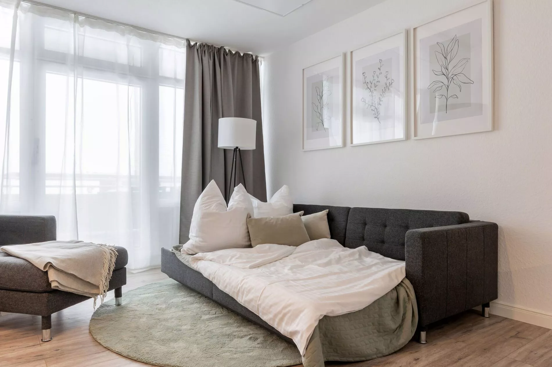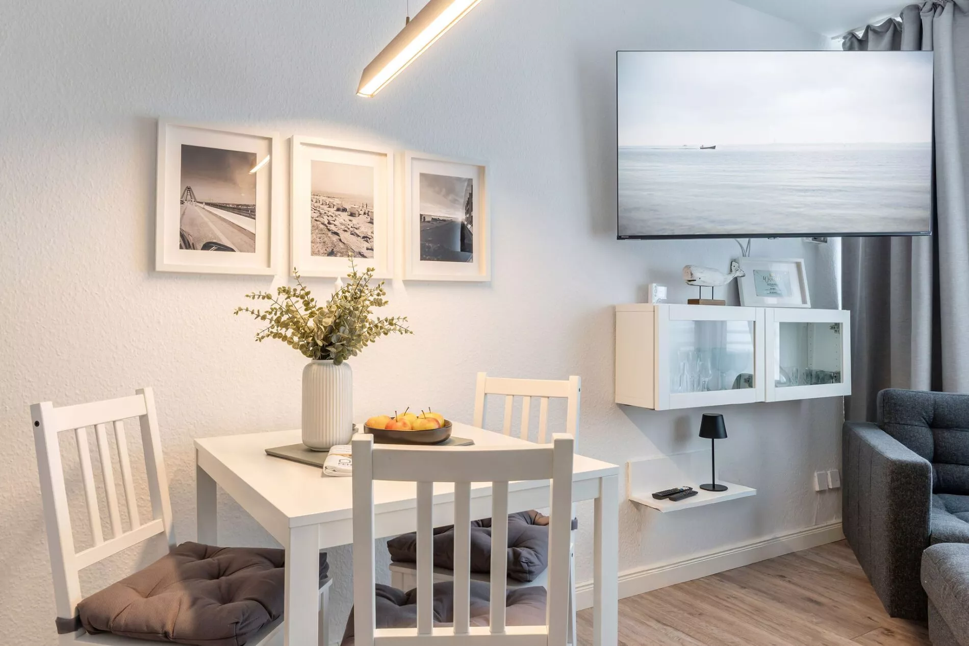 Die Ferienwohnung Sea la Vie am Südstrand von Fehmarn ist dein gemütlicher Rückzugsort für entspannte Tage am Meer. Auf 34 qm bietet sie Platz für bis zu drei Gäste und eignet sich ideal für Paare oder kleine Familien. Der kombinierte Wohn-Schlafraum ist offen gestaltet und grenzt an die großzügige Terrasse. Ein komfortables Bett mit den Maßen 160 x 200 cm sowie ein Schlafsofa mit 140 x 200 cm sorgen für flexible Schlafmöglichkeiten und erholsame Nächte.