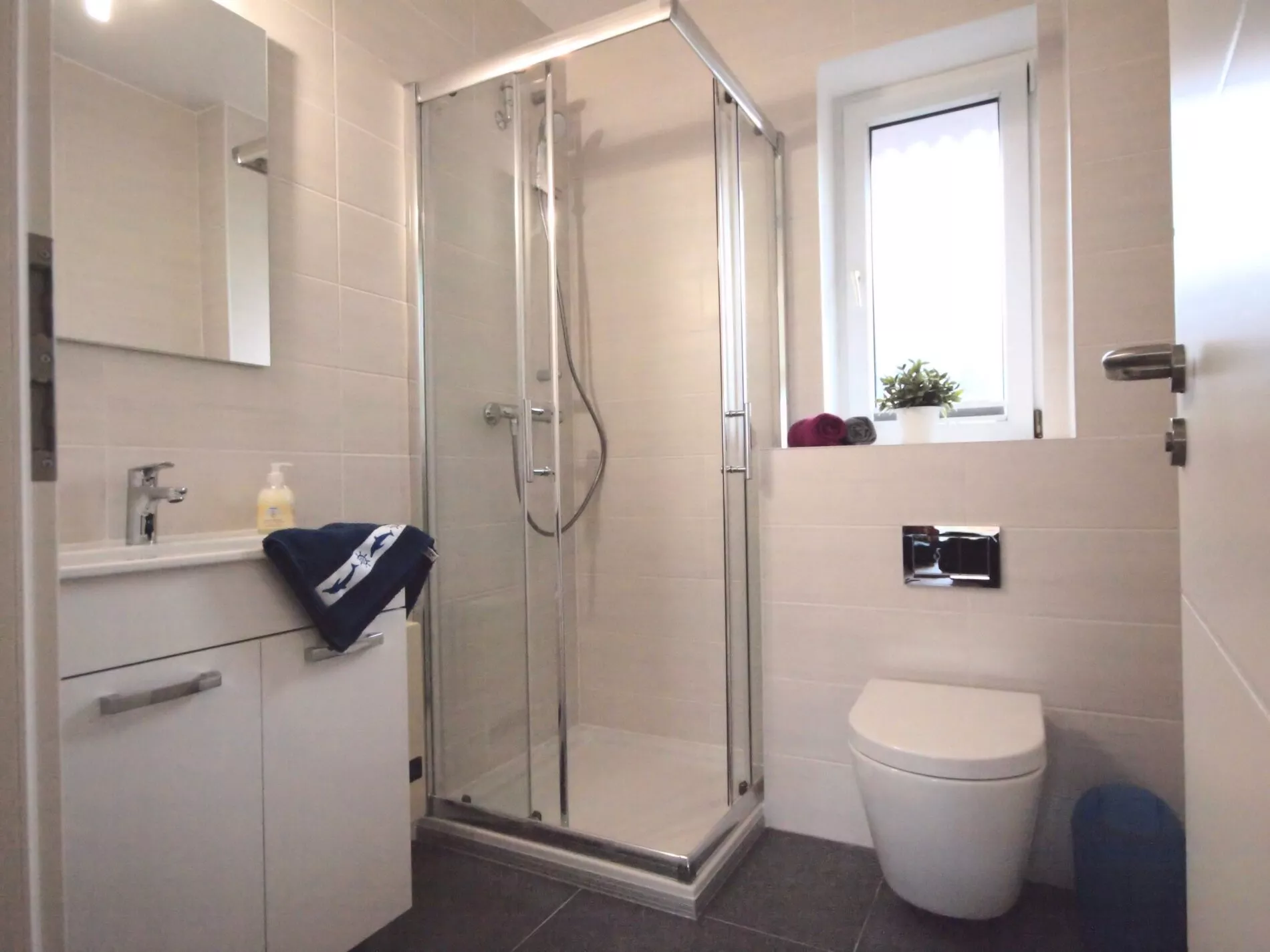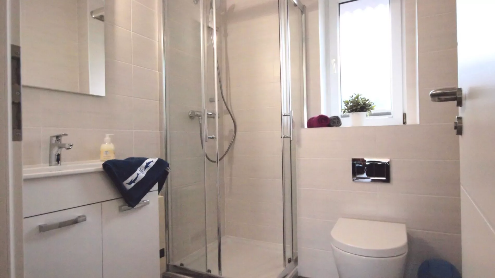 Die Wohnung bietet auf 55 m² Platz für bis zu 5 Personen. Zwei Schlafzimmer sorgen für erholsamen Schlaf: ein Doppelbettzimmer und ein Zimmer mit Etagen- und Einzelbett. Der großzügige Wohnbereich mit offener Küche lädt zum Kochen, Spielen und Entspannen ein. Ein Smart-TV sorgt für gemütliche Fernsehabende, während das renovierte Duschbad mit Fenster zusätzlichen Komfort bietet.