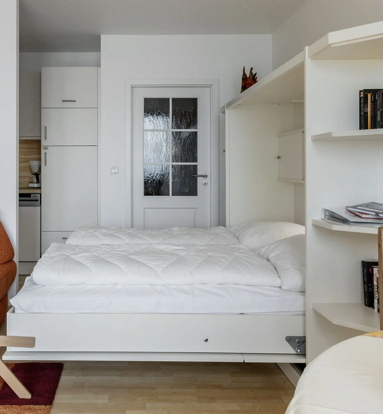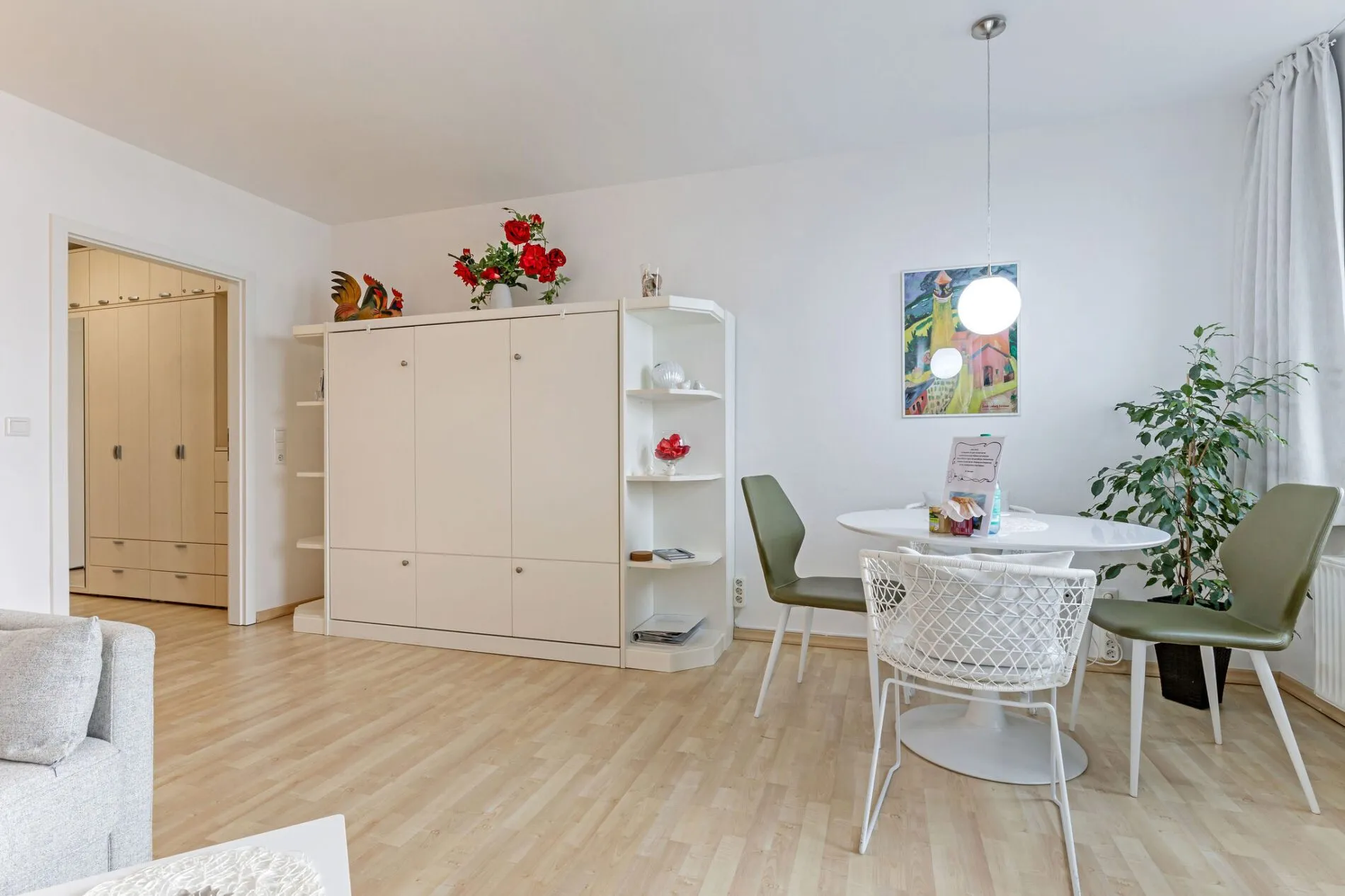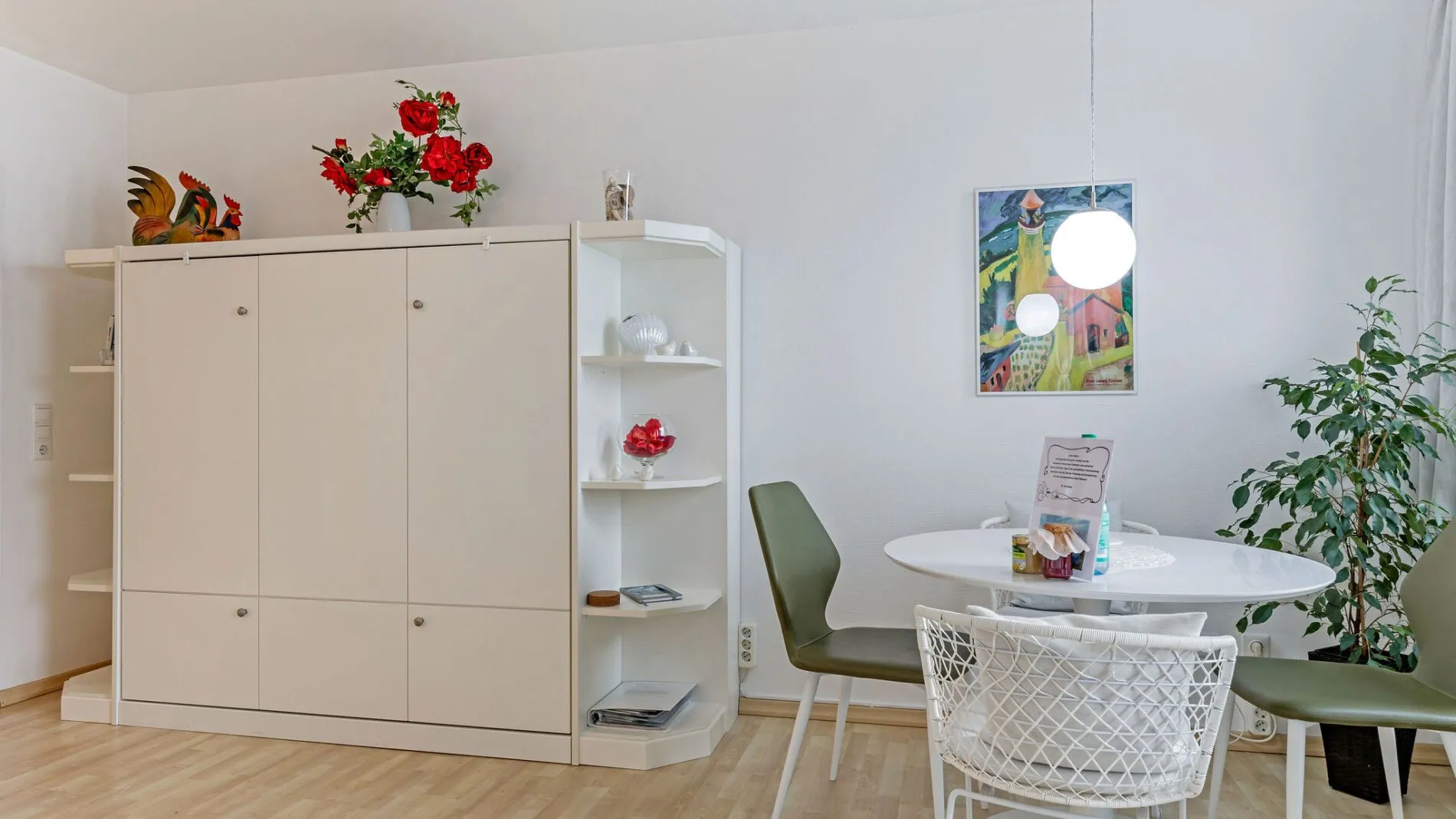 Die geschmackvoll eingerichtete Ferienwohnung befindet sich im 2. Stock der Strandburg (Wohnung 2.5) und ist bequem mit dem Aufzug zu erreichen. Sie bietet Platz für bis zu 3 Personen und empfängt dich mit einer hellen, freundlichen Atmosphäre. Der offene Wohn- und Essbereich mit angrenzendem Südbalkon ist kompakt gestaltet und bietet dabei höchsten Wohnkomfort. Das einfach zu bedienende Schrankbett misst 160 × 200 cm, das Schlafsofa 140 × 200 cm.
